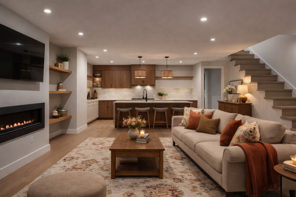 Consistency comes from material choices, color palette, and overall design style. We select finishes that align with the main living areas so the basement feels connected rather than separate.