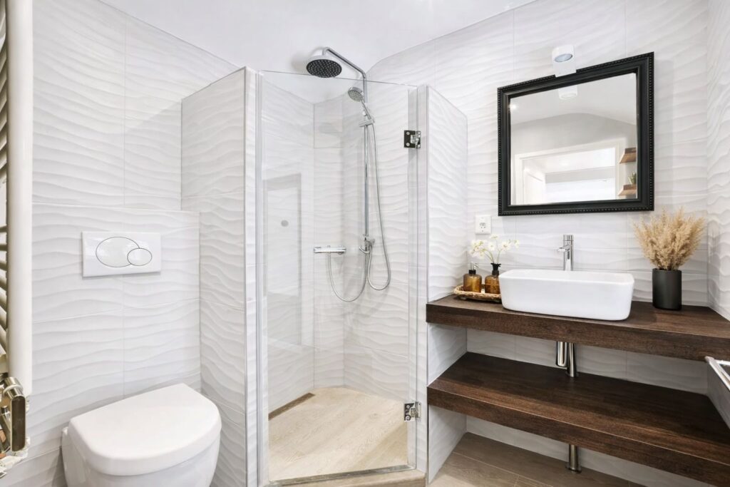 Neutral palettes remain popular, but texture and contrast are increasingly important. Matte finishes, subtle veining in stone surfaces, and layered lighting add depth without overwhelming smaller rooms. In primary bathrooms, larger walk-in showers with frameless glass are frequently requested, especially when replacing underutilized bathtubs.