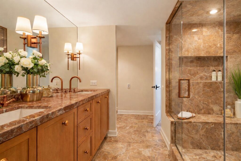 During construction, attention to waterproofing, ventilation, and finish details helps deliver a bathroom that looks refined and performs reliably for years.
