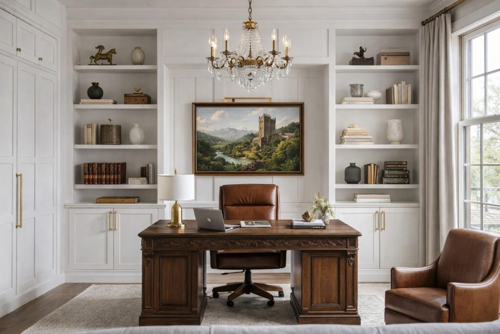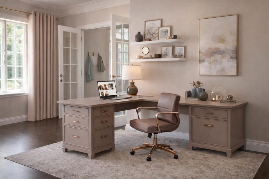 Space Planning and Layout – The layout is evaluated to determine optimal desk placement, natural light balance, privacy, and traffic flow. In many homes, underused dining rooms, sitting rooms, or bedrooms can be reconfigured into dedicated workspaces without altering the overall character of the home.