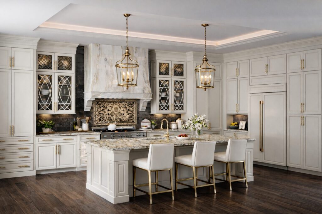 We design lighting in layers — task, ambient, and accent — so the kitchen works well at all times of day. This often includes under-cabinet lighting, island pendants, and targeted illumination for prep areas.
