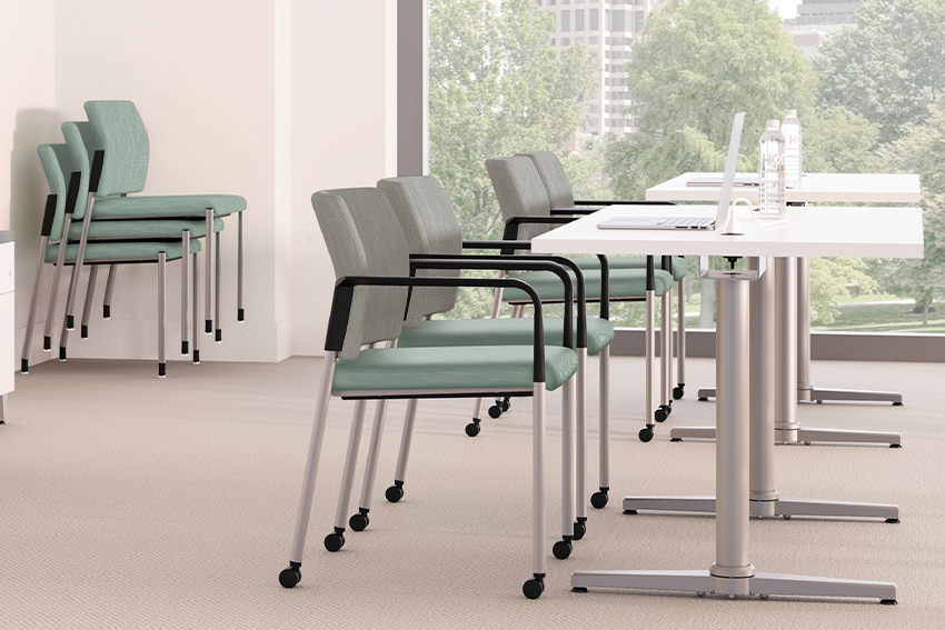 HON Accommodate is engineered for versatility in cafes, common areas, and office spaces, adapting easily to multipurpose and healthcare environments. This durable collection includes guest and bariatric chairs and stools designed for high-traffic areas. The chairs stack four high for space efficiency and can be arranged in rows for organized seating. Durable, comfortable, and flexible, it meets a variety of seating needs efficiently.