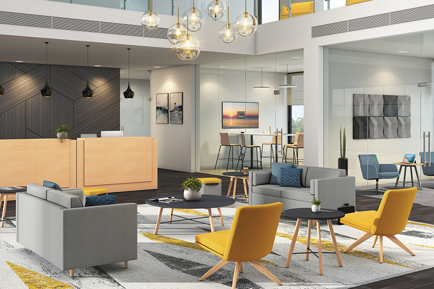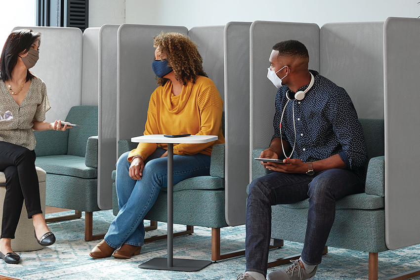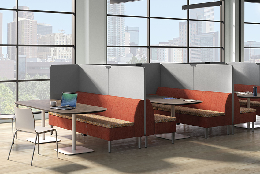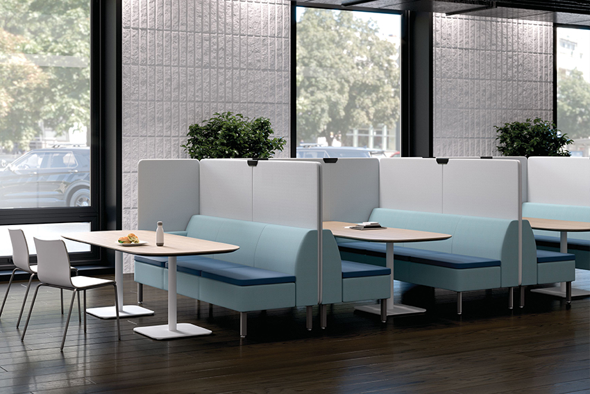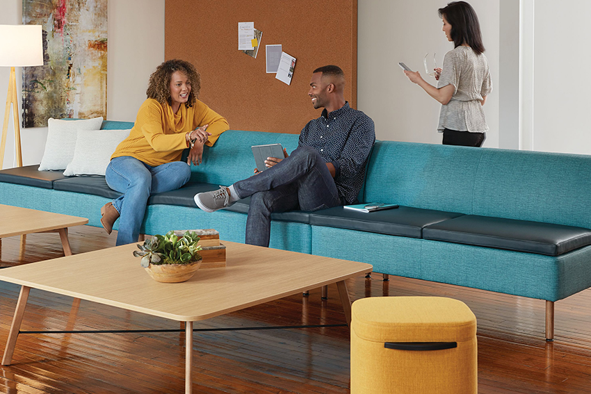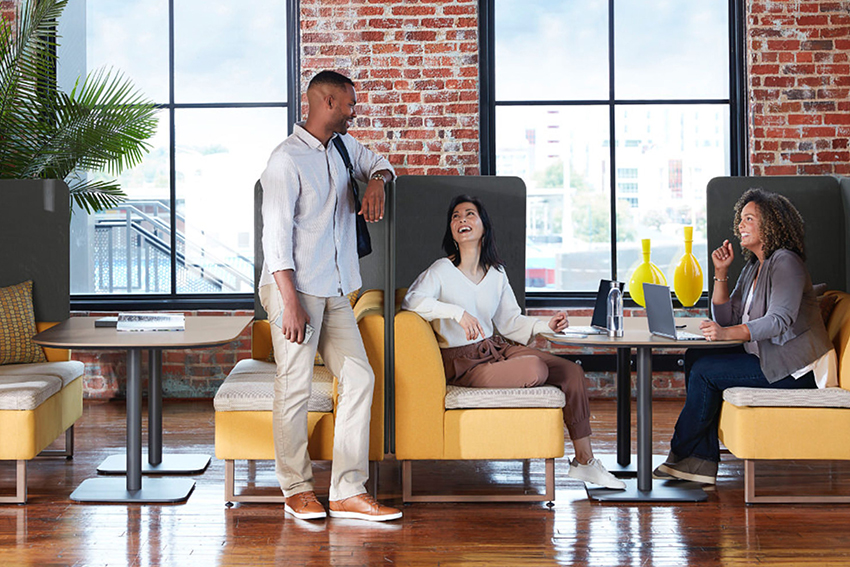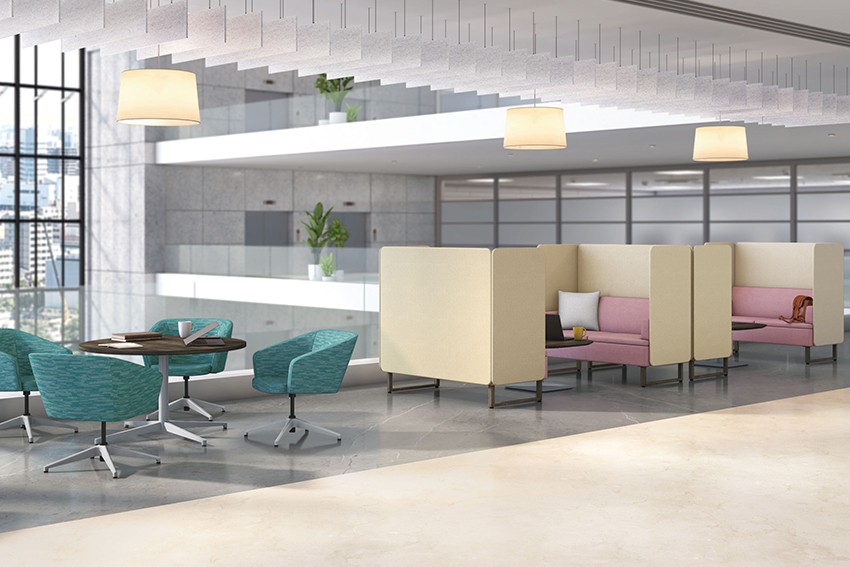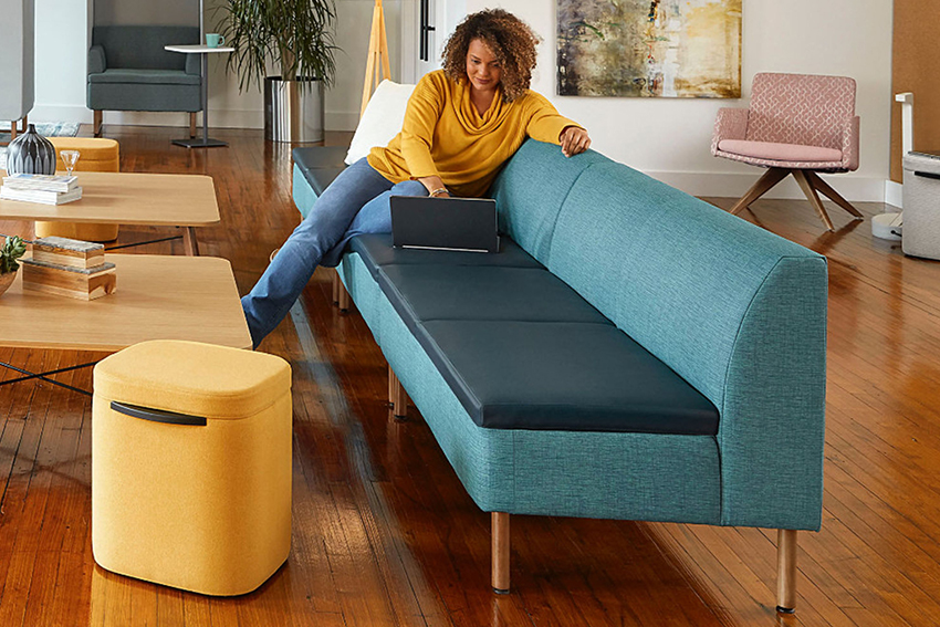 The Astirâ„¢ Collaborative Work series offers soft seating solutions that combine the comfort of separate workspaces with robust posture support, ideal for those wanting a break from traditional desk settings.