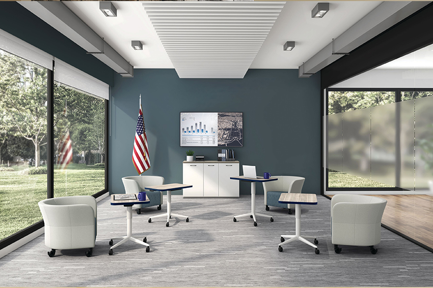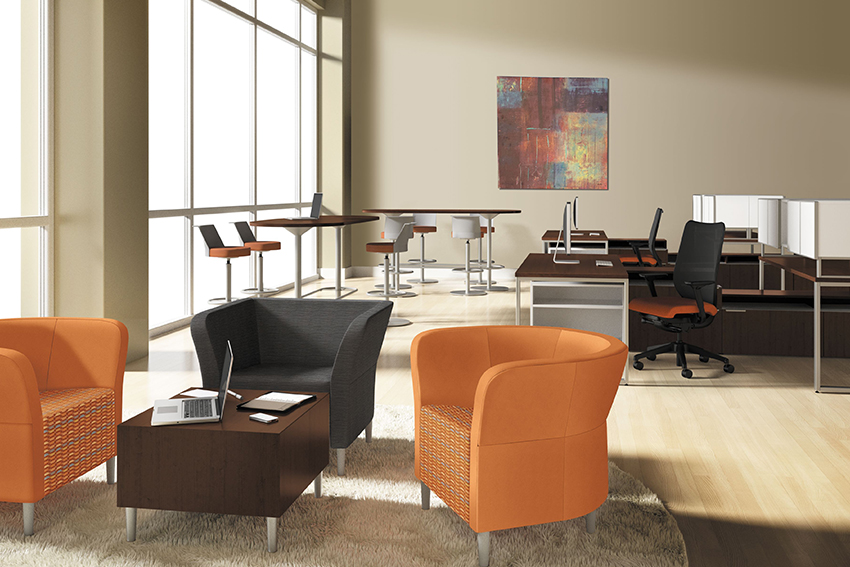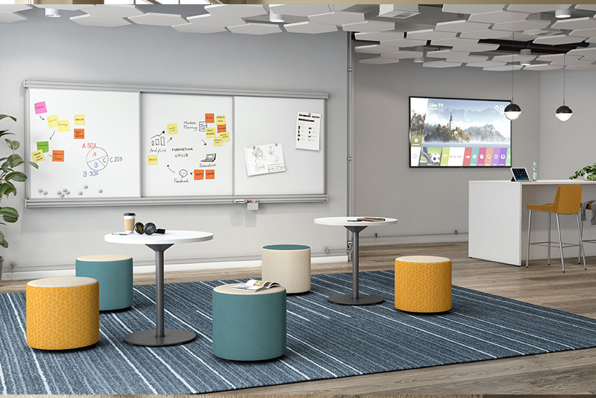 This modern collection of seating and tables is designed to facilitate everything from casual conversations among colleagues to structured group brainstorming sessions. When people come together with the Flock collection, productivity and collaboration thrive.
