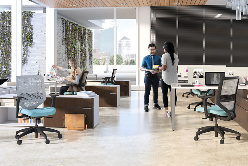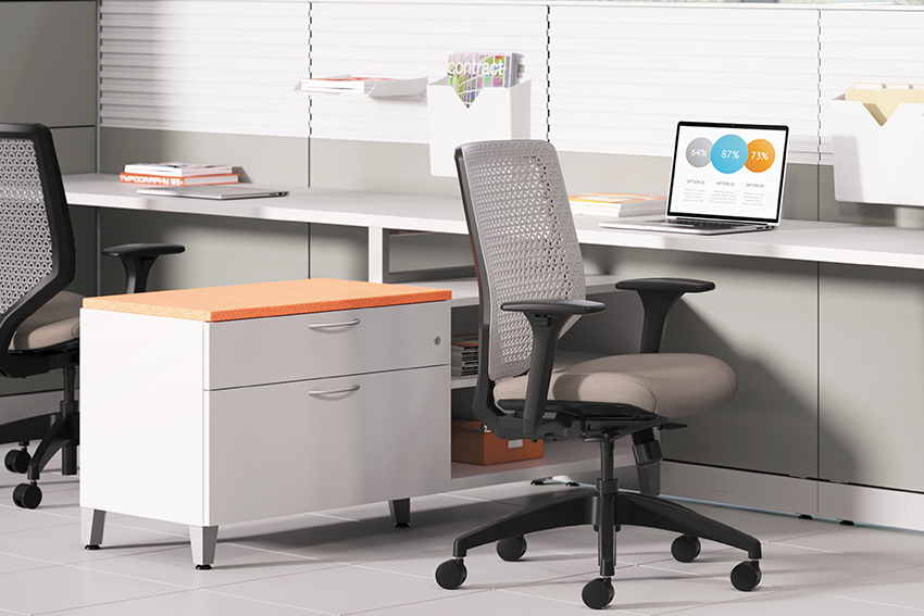 Meet Solveāthe answer to the demand for personalized comfort. With three back materials, synchro-tilt control, and optional adjustable lumbar support, Solve offers a tailored experience. The 4-Way Stretch mesh back delivers responsive support and a gentle feel, while the geometric ReActiv back adapts to the user’s movements for a firmer fit. For added support and thermal comfort, an upholstered front can be included. Solve promotes optimal balance and alignment, making it the perfect solution for all individuals.