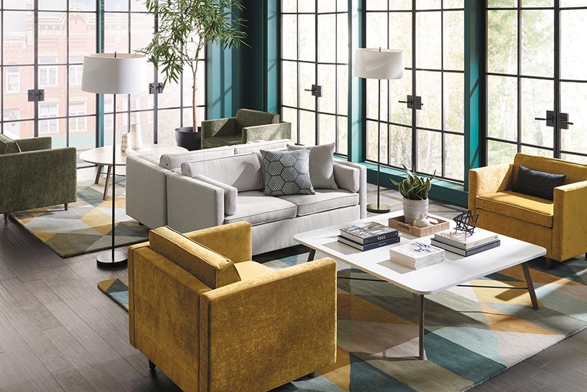Discover a fusion of residential style and commercial durability with our quality pieces. This blend results in versatile and functional products that effortlessly complement any space. Rich textures and colors create stunning motifs, while the addition of an ottoman attachment allows for seamless configurations that integrate effortlessly into any office environment.